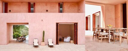 Case Estive: Una Villa minimal in rosa a Maiorca, Spagna.